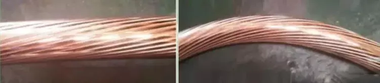 彎曲對導體的影響:電纜導體由多根單芯導線以一定節距絞合而成,在導體制作過程中導體的單線根數和節距大小決定了導體彎曲時的穩定性,過大的彎曲將導致導體的松散和突起,直接影響導體外層半導電層和絕緣層的性能。